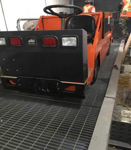 A low platform height makes loading and unloading tools and materials easier and safer in confined tunnel environments.