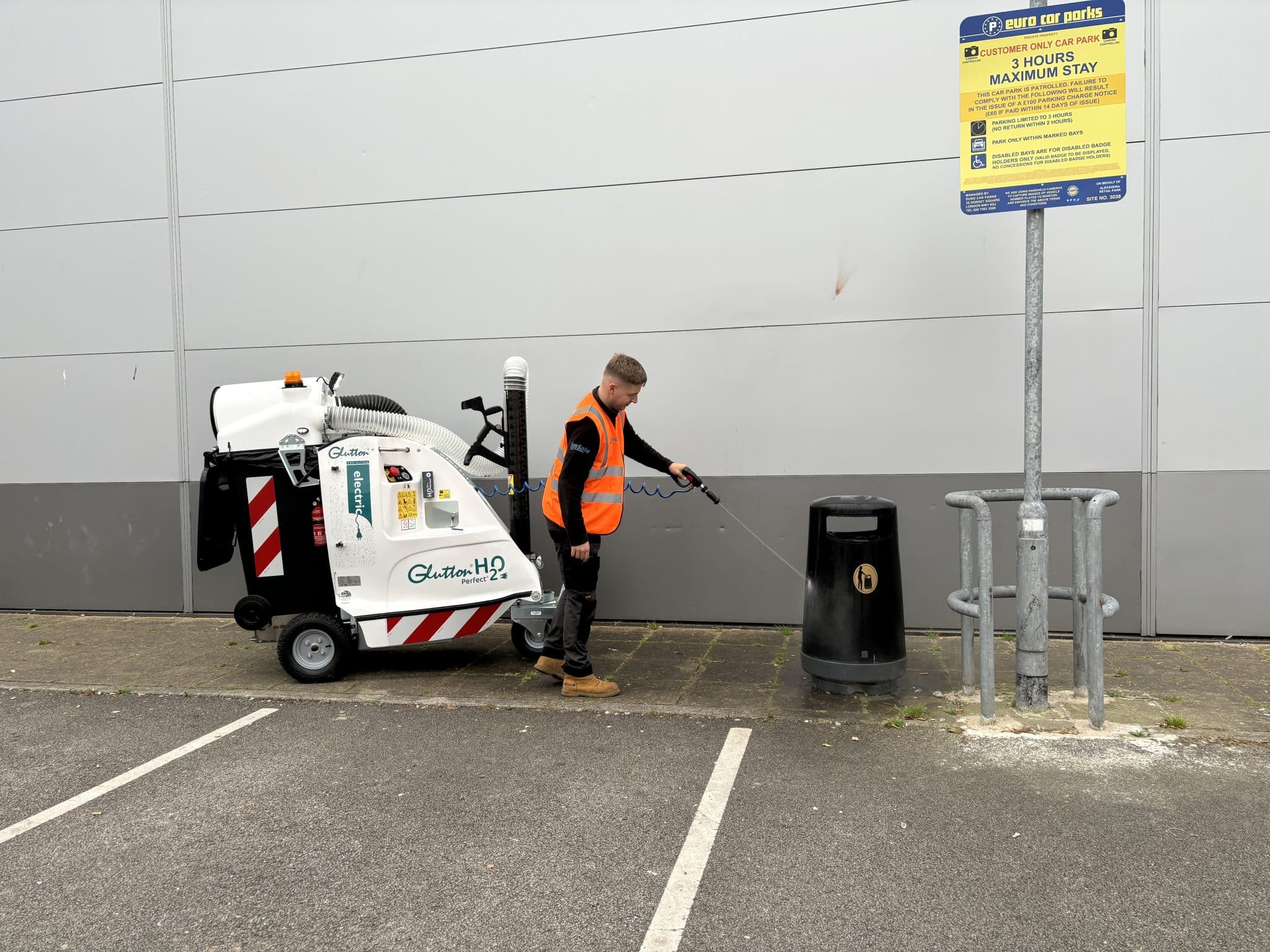 The Glutton H₂O Perfect vacuum cleaner cleans and disinfects your city centres. The Glutton® electric industrial vacuum has revolutionised the work of road maintenance staff. The cleaning attendant has traded in his broom and his litter picker for a modern machine that allows them to reach higher standards while benefiting them with less stress and strain.
